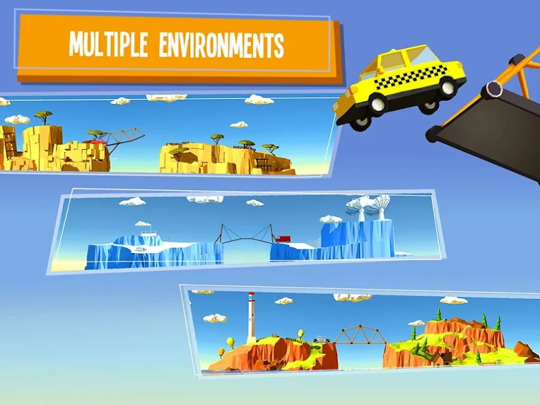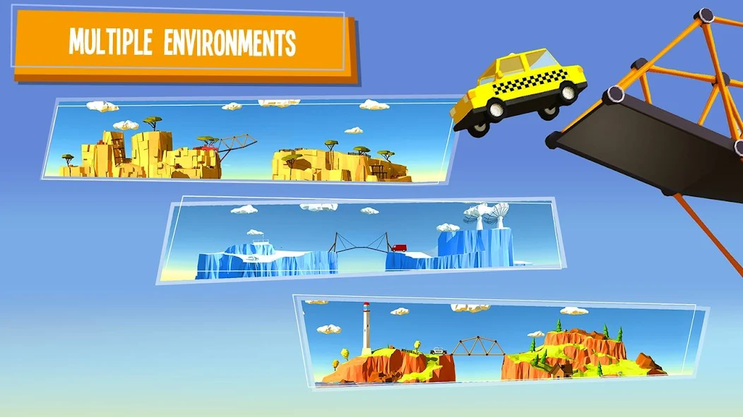 Build a Bridge! (MOD, Unlimited Coins) - extremely exciting game that combines elements of an arcade, puzzle and building simulator. Although we have already seen more than one similar game, but this project is different with a number of interesting game features. So for a start, your task is to build a bridge across various gorges, rivers, and more. But unlike many analogs, the situation is such that in most cases there is not enough material for a full-fledged structure, so your task is to construct a structure with the help of which you can, for example, a long jump through the gorge. Realistic physics will add problems to you, but nice drawn graphics will add to the positive.
