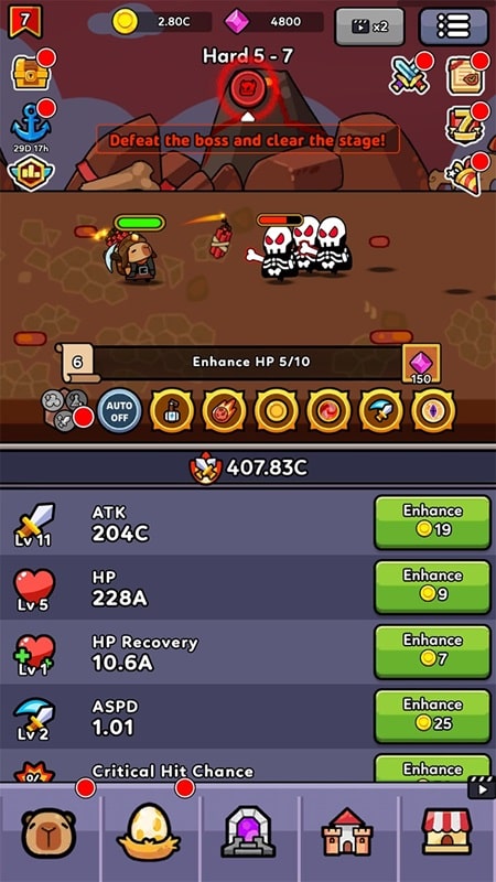 Capybara Survivor: Idle Battle - Dark forces threaten the fate of the capybara world. The capybara struggles to survive on harsh maps against powerful monsters that have come from many places. Upgrade the capybara's skills, acquire new gear, and unlock more pets to defeat the evil enemies attacking you. Numerous defense levels, a wide variety of weapons, and an outstanding item system are all features of this game.
