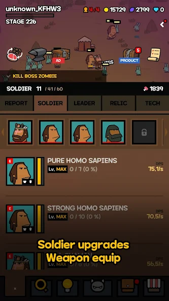 IDLE CIVILIZATION - the world is destroyed by a zombie virus, only a handful of people are left who don't know what to do. So they decided that they could build a civilization on the ruins of their ancestors and forefathers. And we will help them in this matter! Explore manuscripts of past years to achieve new inventions, and also train and deploy your soldiers to protect the smartest inhabitants (each battle with the enemy will be automatic). With each research, your progress will increase and increase. You can also leave the inhabitants alone with the village and go about your business.