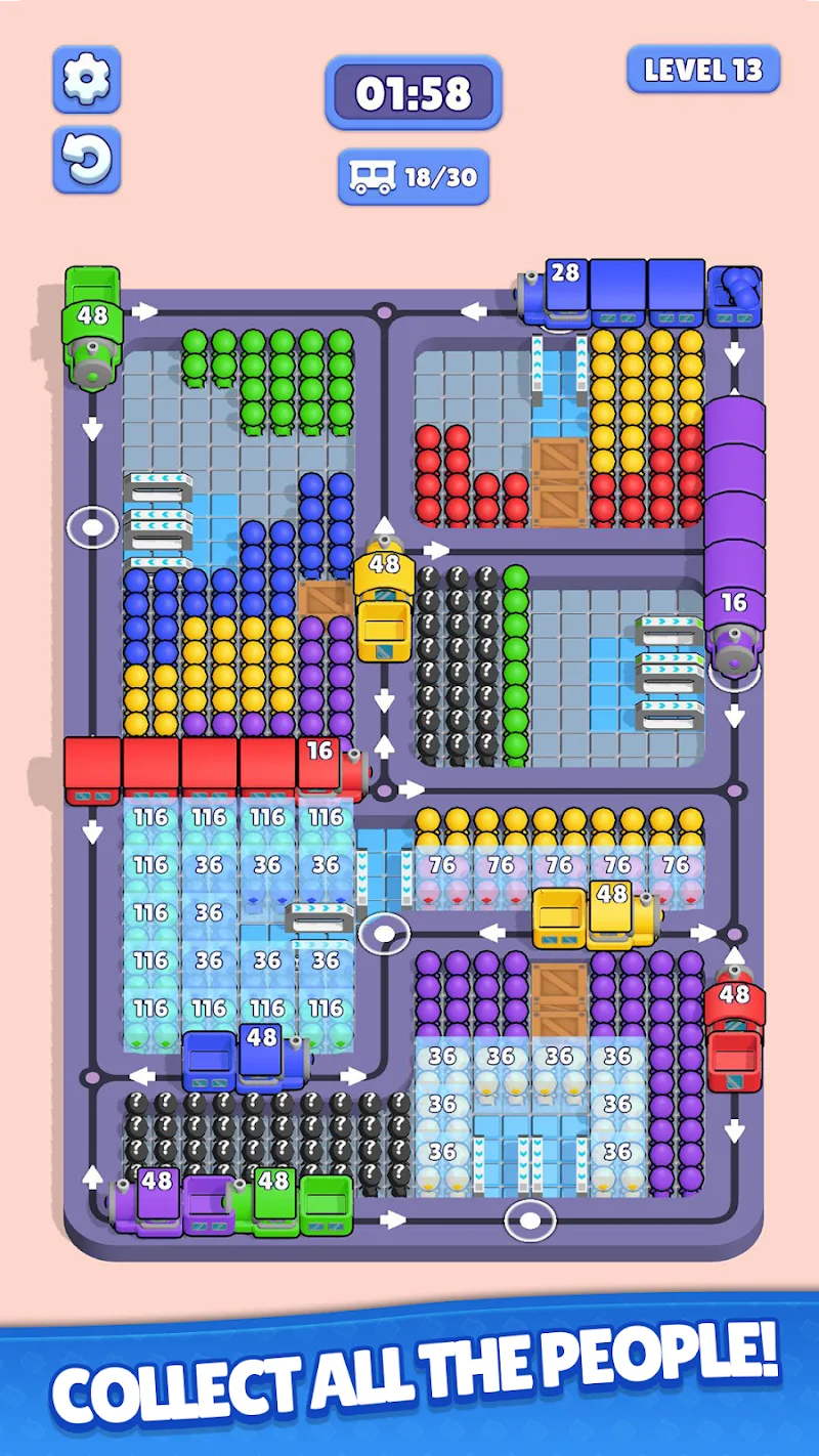 Careful Planning Required: The game with each level requires careful planning, as the train only picks up the right passengers.