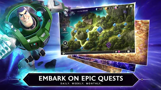 Those wars come from quests in the game system. It is graded from easy to difficult and spans new story progressions based on the history of the Disney Mirrorverse and Ages of Isolation, Discovery, and Fractured. Gamers will in turn complete missions, level up, and unlock new missions. Quests will bring them into battle and gradually unlock interesting story chapters. In battle, their job is to control the heroes by choosing skill cards. It’s also a chance to enjoy the thrilling on-screen action.