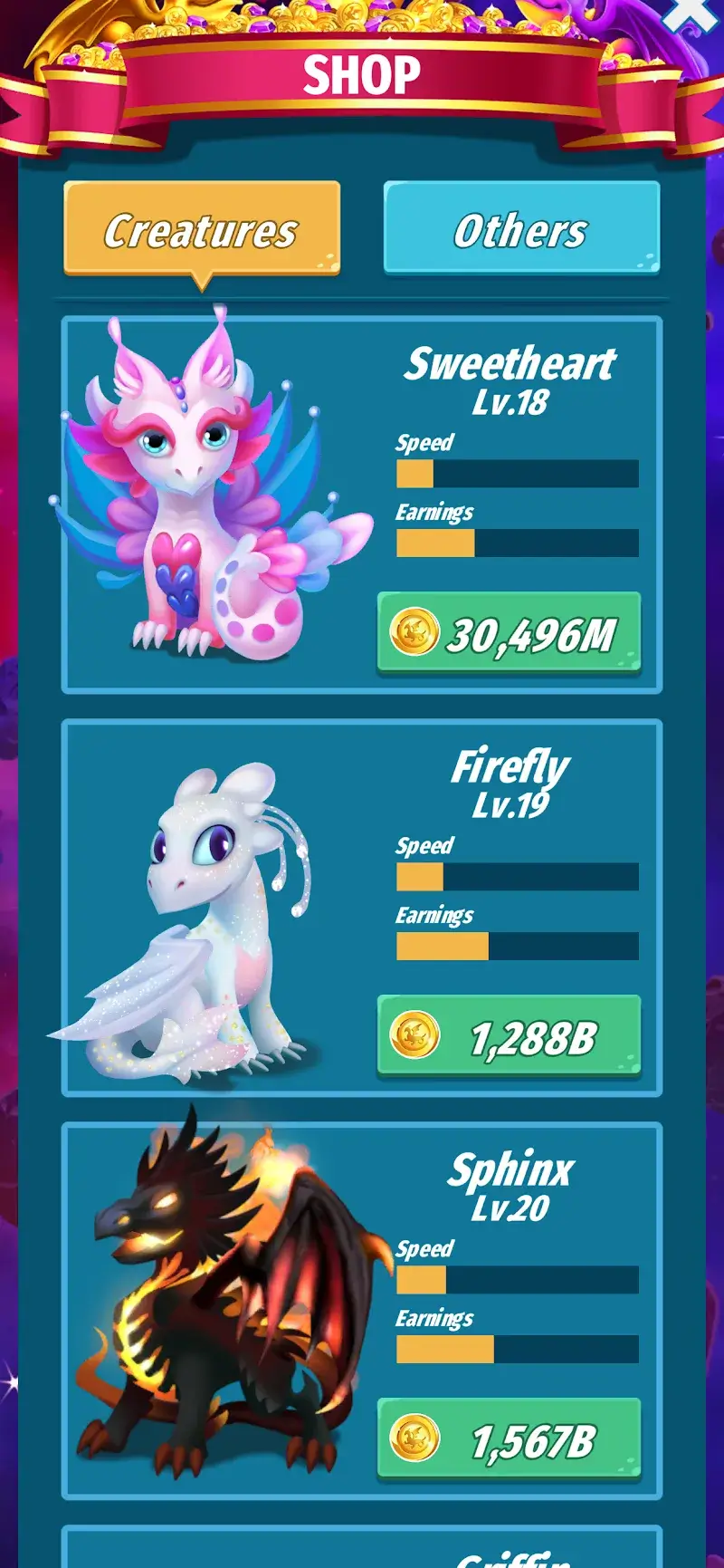 Earn money offline: Your creatures continue to earn money because the game has an idle mechanism. In particular, you often need to accumulate assets to have reasonable investments later.