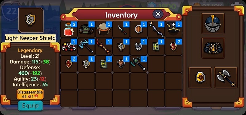 The developer of Dungeons and Goblins has brought many different types of equipment. Players can own that equipment through their tenacious battles. In addition, they can also be obtained through trading or upgrading in the region. This helps gamers have a desire to explore the world in the game to collect items. You can control the number of resources you currently have right in the Inventory section of the game. These pieces of equipment are undoubtedly indispensable as influential and powerful weapons. Depending on your playstyle, the weapons you pick up can be melee-like swords or axes. Along with that are shields that help you shield yourself from enemy attacks. There are also many other protective types of equipment, such as body armor and helmets, to increase defense. Finally, there are healing potions that will help you heal while fighting.