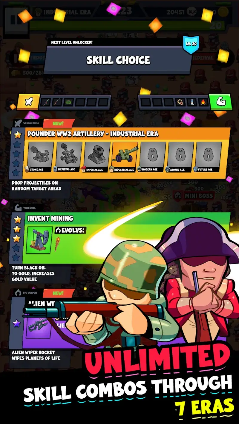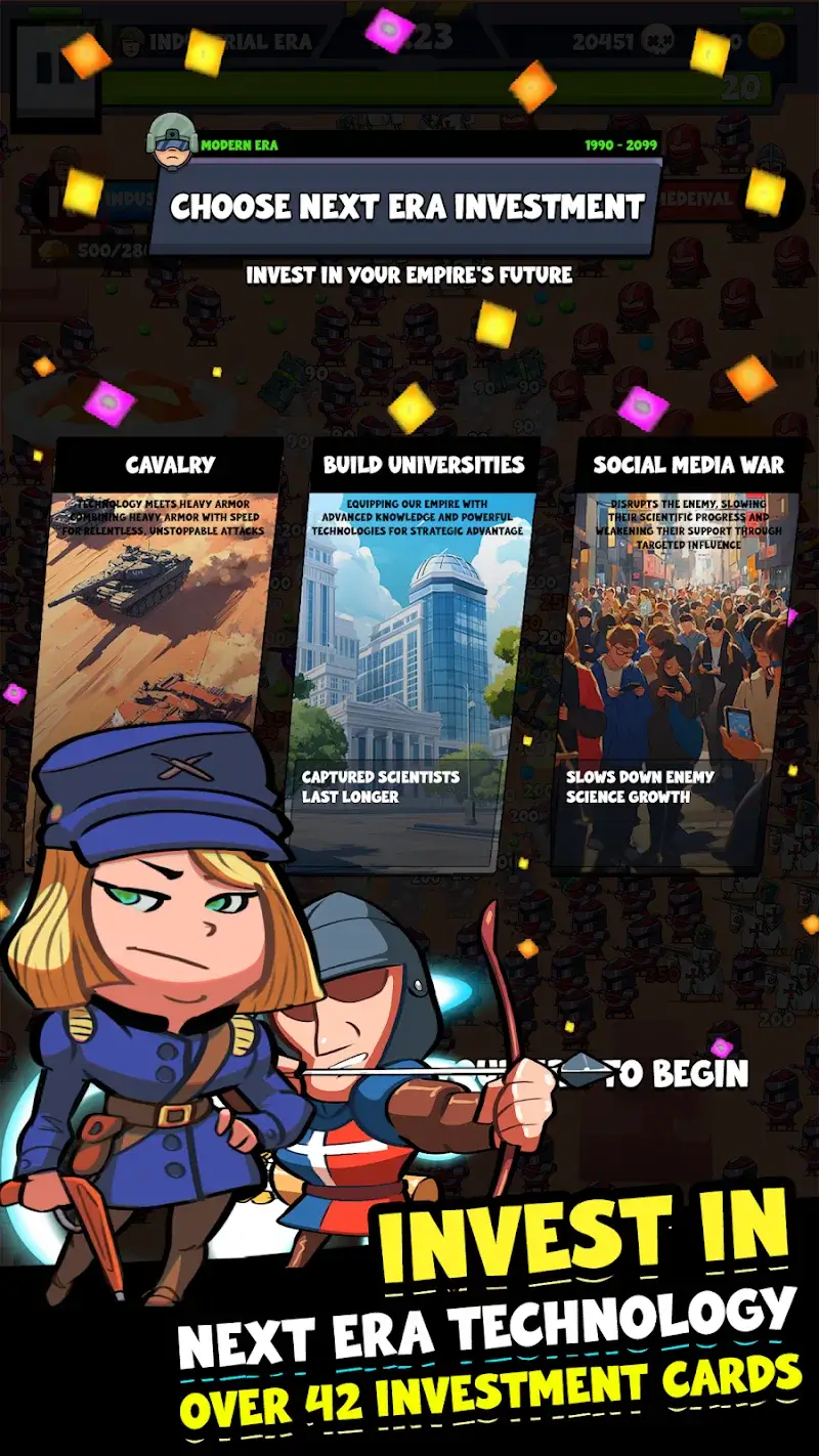 Strategic Investment Cards: Players can unlock investment cards and rewards specific to each era, helping to enhance the development of civilization and promote progress over time.