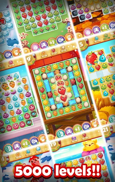 Farm Heroes Saga (MOD, Many Moves) - another creation of the studio King, which is an arcade puzzle game from the series three in a row. Unlike its numerous counterparts, this project has a full-fledged story, and so, according to the plot of the evil raccoon Rancid returned to the village and is now interfering with the residents of the settlement to participate in competitions, you have to prevent the insidious beastie disrupt the competition. Otherwise the game mechanics is classic, pass one hundred levels, combining three and more identical elements. For variety, the developers have added a number of bonuses, improvements and skills to Farm Heroes Saga mod apk.