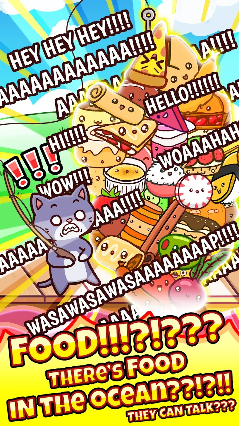 If one day you turned into a cat and had to find food for yourself, what would you do? That is to pick up a fishing rod and come to Fishing Food. This place will take you to a vast, vast ocean full of fish. You just need to drop the fishing rod, and you will have fish to eat for many days without having to wade into the water to catch them. So, are you ready to fish?