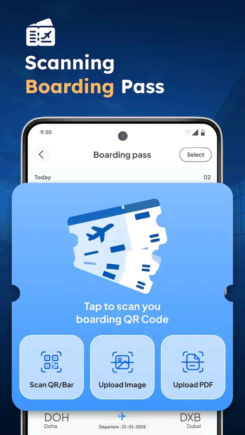 - The boarding pass scanner and automatic flight import function without restrictions.