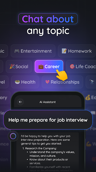 Gemmy AI provides a chat experience with artificial intelligence that can understand and quickly respond to questions from users. You can ask anything, from learning knowledge, life tips, to food suggestions, job advice or love affairs. The application processes language naturally, making the conversation smoother and more enjoyable.