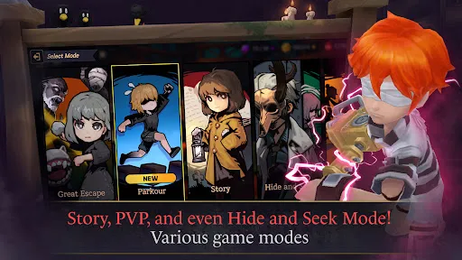 This mode features 8 concurrent players, 2 pursuers, and 6 fugitives. In the role of the pursuer, you need to do everything to find all the children hiding in the house and prevent them from escaping. You will win if you lock all the children in the prison and don’t let any of them escape from the house. In contrast, in the role of a fugitive, you will find a way to escape from the horror house and escape with other teammates.