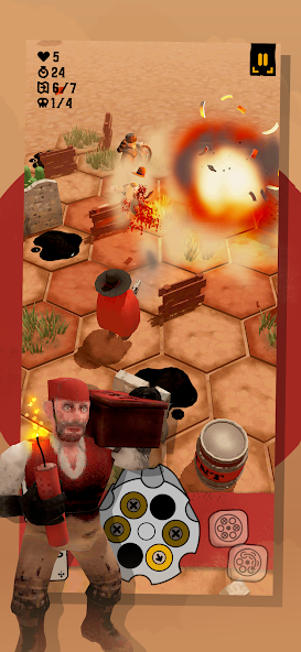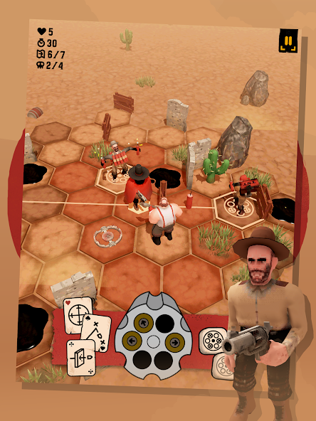 Guncho is a tactical roguelike in a Western style, where turn-based shootouts blend with a unique positional shooting mechanic. Explore randomly generated levels, maneuver using a hexagonal grid, and apply tactical skills to defeat gangs of criminals. Your goal is to become the best shooter by upgrading bullets and abilities on your way to the final boss.