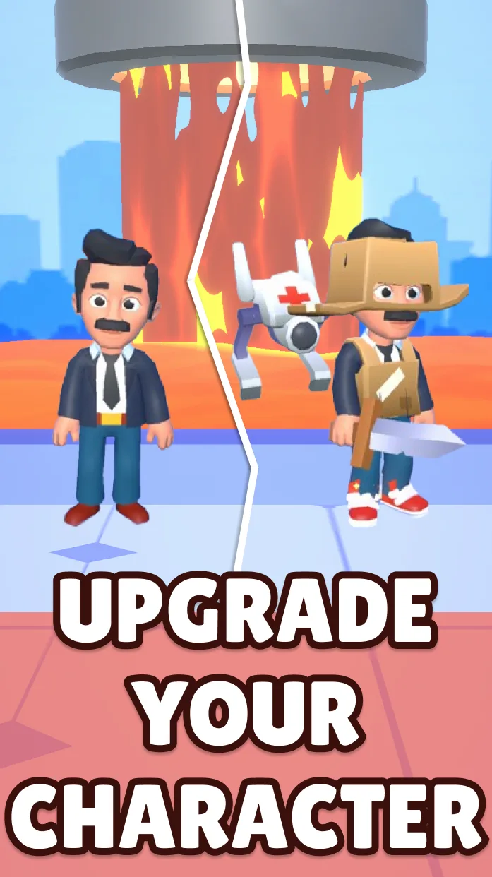 In a hypercasual world full of irony, the player is forced into the role of a diligent office worker. However, the working scene is not a quiet office block. Instead, a molten lava disaster is constantly rising from below. This pressure turns office life into a literal breathless race. This race is a race to fight with many other people. The lava is just a premise to push the player forward. The rest is that you will need to face many other office workers. The two of you will duel each other to find the winner. Surely when you win, you will receive some rewards to upgrade yourself. Although this is a fighting game, it does not have a very complicated plot element. Players simply fight to save their own lives.