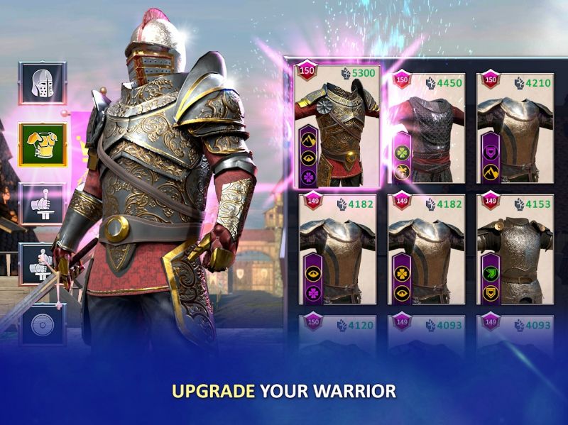 Knights Fight 2: New Blood has a treasure trove of different armor sets and weapons. To get them, you can search in the store or get them after completing the game’s missions. All types of equipment and weapons can be upgraded with stats and shapes. There are all kinds of armor, from beginner to advanced, here. Wearing these clothes will add to the attack stats and reduce the opponent’s damage. In addition, different weapons also have other uses. Hammers, axes, knives, swords, … each has its strength. Upgrade them to get the most advanced equipment.