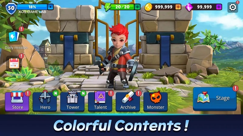 Heroes support you in to fight, and you decide to build towers. This place temporarily is where heroes guard in all directions where there is a possibility of monster ambushes. Building towers can be organized by you with gems to increase hero power. You can also strengthen the tower’s skills when a hero is inside and continue to fight. Bring your heroes into the defensive buildings you build and power them up to fight. The combination of tower and hero is the best measure against monsters. Fight monsters and increase their achievements with hero kills.