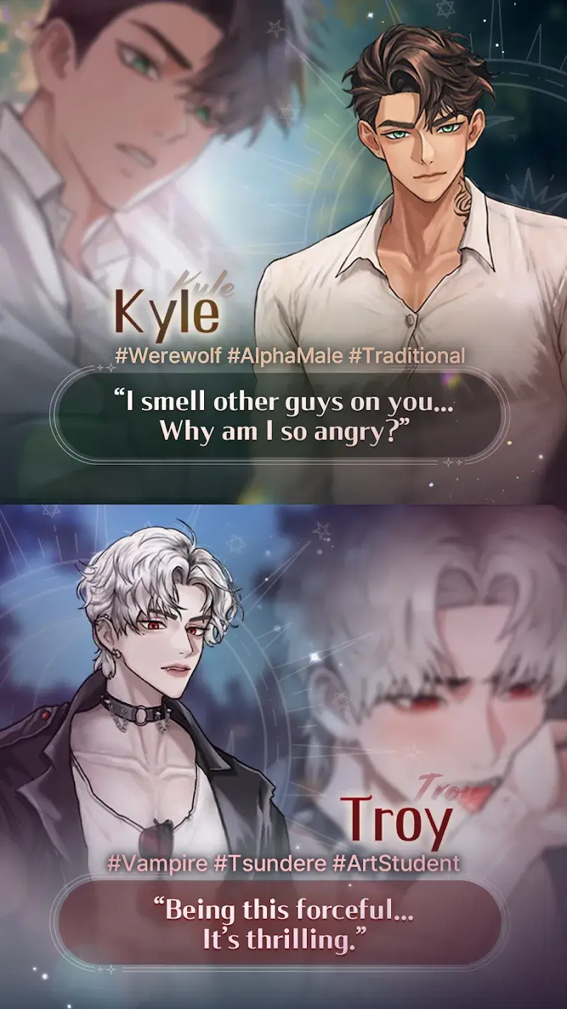 An otome world where powerful entities exist and are waiting for a companion. Its experience is often mixed with mystery, impression and danger that attracts you over time. In particular, the mysteries of the characters will gradually be revealed if you make the right decisions.