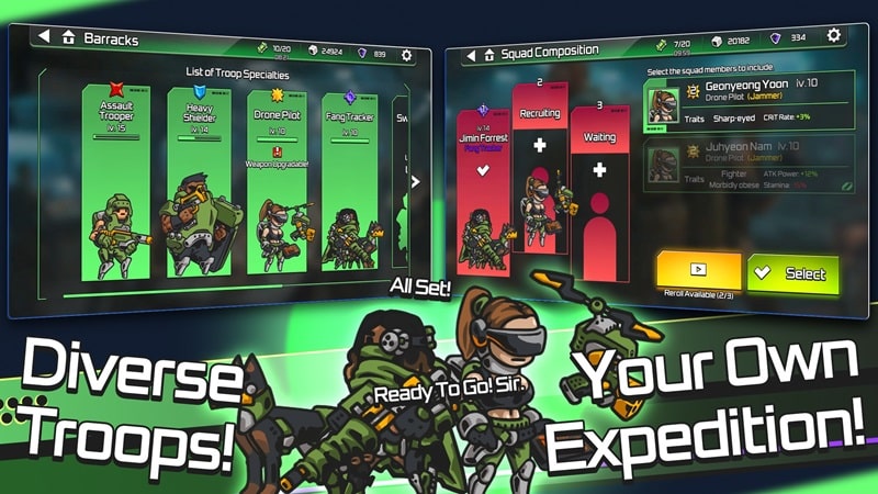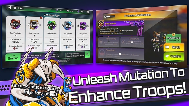 Building a defensive base is still not enough for humans to regain control of the world from monsters when they consider themselves the masters of all lands. Therefore, the moment humans reappeared in Mad Mod Max APK mod is also the time when they became the target of monster attacks. But on the contrary, you can also level up your combat power, making your machine forces stronger. The laboratory gives you Brutality and Predation upgrades, improving damage and critical chance. If you want to increase your survival ability, reduce damage taken or reduce cooldown, research the Survival, Adaptation and Revelation skills. Unlock and upgrade skills, improve the combat ability of the machine forces, making them stronger.