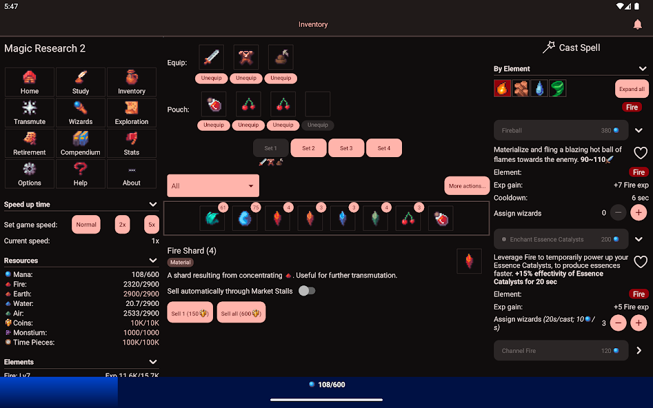 In Magic Research 2, you take on the role of a wizard whose sole goal is to find or create the Philosopher's Stone. You have at your disposal over 120 different spells that you can use to overcome obstacles and achieve your goal. Study the elements and discover new ways to use magic to become a true master. Transmute over 250 different items using magic to obtain the necessary resources and aid in your journey. Encounter over a hundred different plotlines with powerful bonuses that will help you progress faster each time. Restart the game and receive weekend bonuses to improve your skills and become even stronger. Expect over 60 hours of captivating gameplay with a clear ending that may have multiple variations.