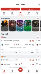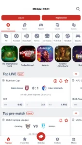 Megapari - is the official mobile application from the bookmaker company of the same name, which gives users the opportunity to bet on sports and participate in gambling directly from their Android device. With the application you will be able to predict the results of matches in such sports as soccer, tennis, hockey, volleyball, boxing, swimming, cricket, horse racing and many others, as well as participate in sweepstakes and receive bonuses. One of the features of the application is the possibility to participate in sweepstakes, such as “Exact Score” or “Pyatnashka”, where you can bet on the outcomes of matches and even win a progressive jackpot by guessing the maximum number of outcomes. For fans of financial betting, there is a section where you can predict currency fluctuations using charts and odds. Megapari also has an extensive games section including poker, roulette, quick games, baccarat and a host of slots available in demo mode or with the option of freebets and special bonuses. Users can play their favorite gambling games and bet on sports anytime and anywhere thanks to the mobile app's user-friendly and intuitive interface.