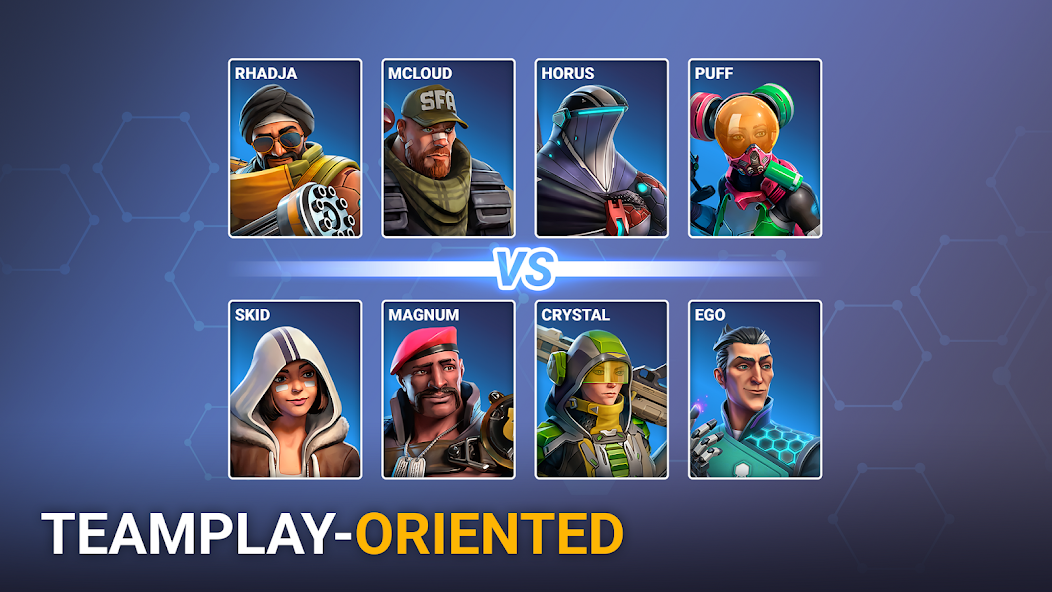 In this exciting mobile shooter, you will fight for survival in intense battles in the cyber arena. Tactical combat, deep shooting mechanics and fast team action are all at your fingertips.