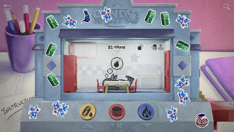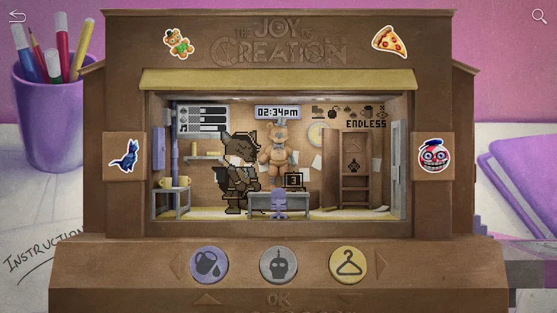 myPOPGOES is a resource management simulation game combined with engaging minigames to create a system of tasks and rewards for players. The game is designed in a classic and beautiful pixel art style, blending the style of classic pet-raising games with the horror/comedy elements characteristic of the Five Nights at Freddy’s universe.