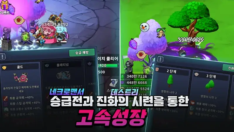 The battle between players and spirits officially breaks out in 네크로맨서 키우기 – 5000뽑기 증정. Many spirits want to take over Destry and are attacking it. The journey of fighting and protecting Destry will be undertaken by the player. As a talented warrior, the player will have to create appropriate development and combat strategies.