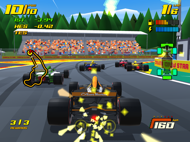 New Star GP is an exciting arcade racing game that combines team management and development strategy, where you embark on a journey from the start of your career in the 80s to modern championships, enjoying dynamic races and a retro atmosphere. Game features: Stylish graphics and an energetic soundtrack inspired by racing hits from the 90s. The outcome of the race is influenced by tire wear, parts failures, weather conditions, pit stop strategy, and fuel management. Start your career growth in the 80s and participate in races of various formats, upgrading your cars and improving your team. Compete at famous racetracks around the world, set records, and earn rewards.