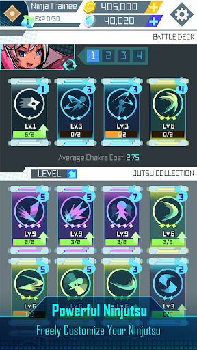 More specifically, the virtual buttons on the screen will represent separate attack actions. Accordingly, you will use the left or right button to navigate the character move. Simultaneously launch effective combos by clicking on the icons of skills on the screen. In addition, you need to pay attention to the main character’s HP and energy. The energy stat will help you unleash skills on the enemy, while the HP stat represents the ninja’s life in each match.