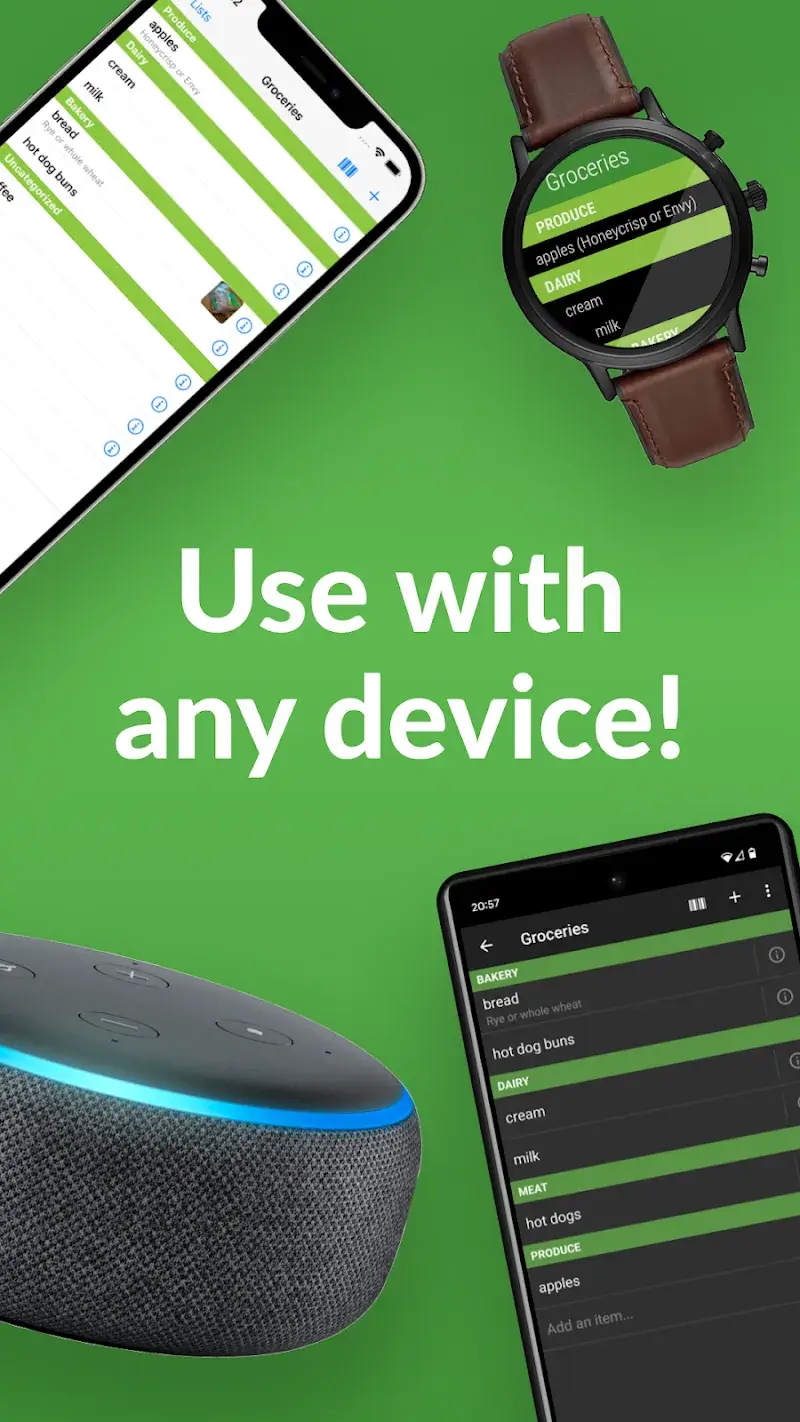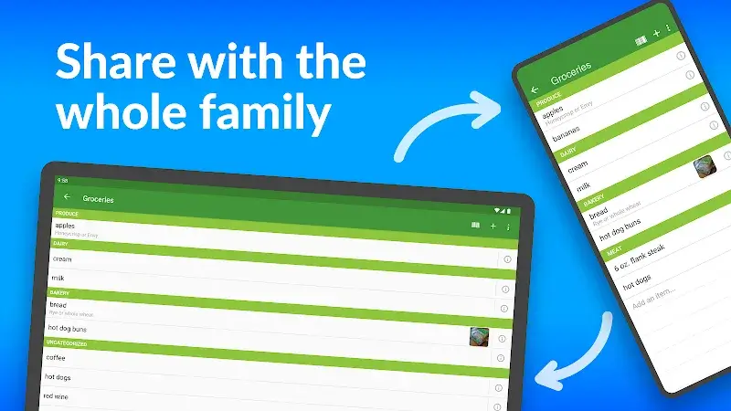 Instant List Sync: With the instant list synchronization feature, any changes to the list will be updated immediately on all devices. This ensures that everyone always has the most up-to-date shopping list.