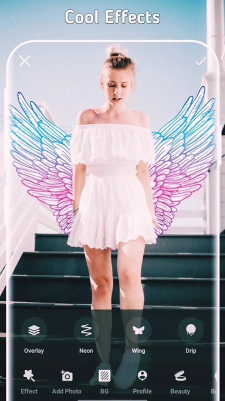 To make your photos more unique, the effects that PicsMaster Unlocked Premium brings are indispensable. Users will discover many new effects, meticulously designed and not duplicated with any other photo editing application. Some special effects that you can use: Light leaks, Film Grains, Textures, Gorgeous gradients, Magical effect, Neon, Wing, Drip and more. Each effect has its own style and characteristics, depending on each person’s style to choose the appropriate effect. After selecting the effect, users can move them to the desired position and edit again to get the desired results. In particular, you can combine many different effects in the same photo and must pay attention to using overlays to avoid overlapping effects.