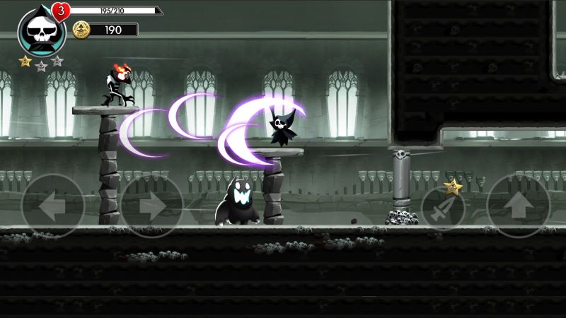 With the simple operations and buttons that this game offers, your task is to play the role and skillfully control the grim reaper character through levels of increasing levels. With dexterity and agility, you must launch precise attacks on monsters while avoiding dangerous attacks from them. Timing running, jumping, slashing and distance of moves in Reaper Adventure: Unruly Soul APK is also very important, it helps players control the amount of cooldown time or launch beautiful combo attacks at the same time. On the paths of destroying monsters, gaining experience on the past path is the key to upgrading yourself.