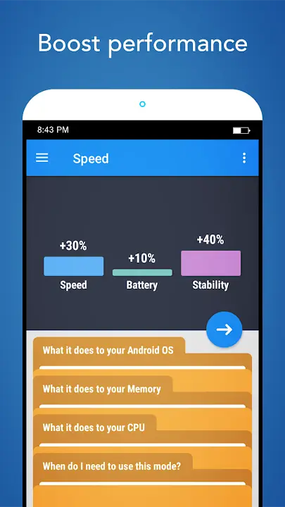 Root Booster is here to offer the enhanced battery and improved performance of all the apps on your device with ease of background working. The application provides optimal solutions to help you remove junk files, empty folders, and cache files, helping to free up maximum memory., where users need to perform some settings in the app to enhance the battery life easily, the performance of tools, saving battery, and stability of the apps. One of the magnificent tools appreciated worldwide is all for you. This not only reduces the device lag but also significantly preserves the life of the battery. More than 10 million downloads and thousands of positive reviews are the perfect testaments to the app's quality. This is free adjustable and trusted through a variety of different available features. Root booster is an application for boosting your device speed and can be used to make your smartphone more stable. It is developed by a team of Dominik Nozka. This application is for those who are having low-end smartphones. This application will help them to use their smartphone at the best usage. There are many boosters like this in the market, but this is the most loved and most downloaded booster. This is the mod version of this application; here, you will have many extra features for free of cost, and it is not harmful to your device too. So you can easily use this application to make your smartphone better and smooth.
