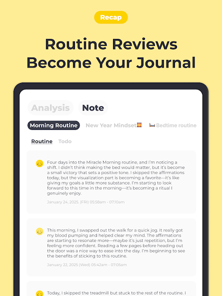 Routinery is a great tool for anyone who is interested in starting since it presents less-known features and offers prepared routines for those who might be worried about how to start. By means of planned advice, one can successfully remove any obstacles that might hinder the development of essential beginning routines. Novices' confidence grows with increasing achievement; this encourages them to prolong their practices and become more specialised to their goals. As its users become masters in important disciplines, the application develops alongside them.