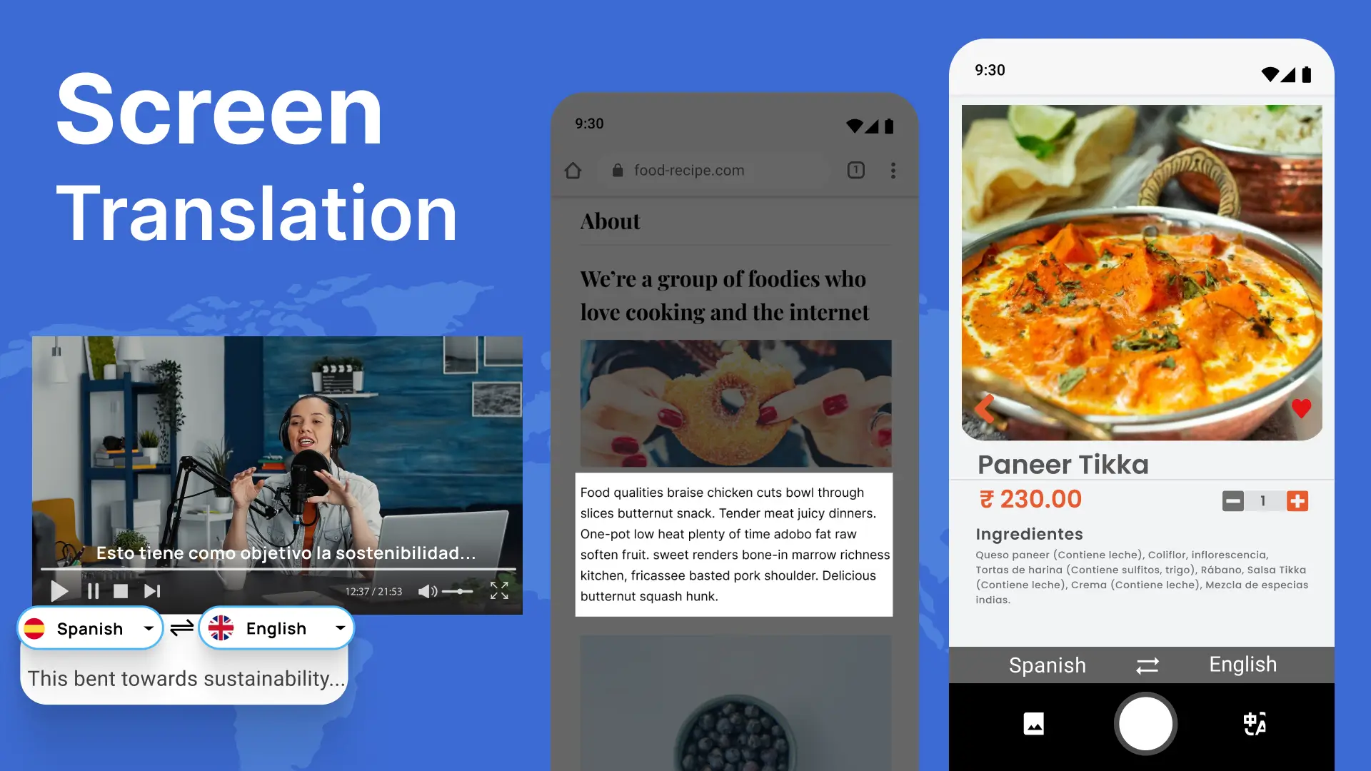 screen translation software is first and foremost a monument to technological advances. This unique technology lets users easily translate web pages, documents, and other screen material. The capacity to easily translate text on displays, independent of location or time, has made translation easier and more accessible. It supports over 100 languages, a remarkable feature. Due to its wide range of linguistic capabilities, users from many backgrounds and areas may fully exploit the software's features. The task is to translate mobile device text. This project requires translating textual content. Translation of the game screen is required. This project converts video game graphics and text from one language to another. Scanning and interpreting digital material is essential for comprehension and cross-cultural communication. After carefully examining the text, its linguistic parts are converted into a new language. This helps people overcome linguistic hurdles and access unavailable information. Screen text recognition is becoming crucial in modern society. With the rise of digital devices and technology, people must continuously analyse and understand language on screens.