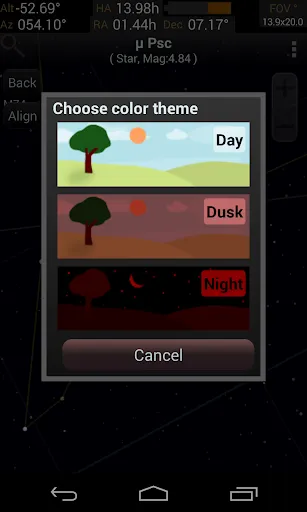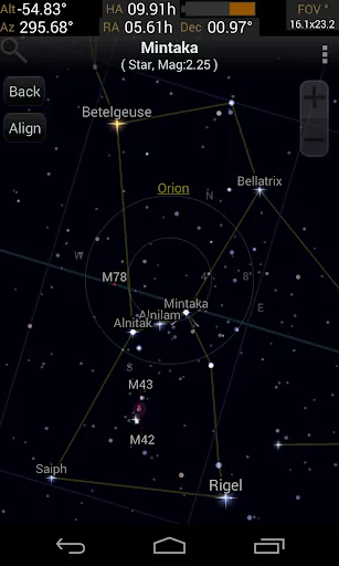 Basically, this is the feature that makes SkEye Pro more prominent in the present time. The realistic navigation mode in this app provides an impressive and convenient night sky viewing experience. To understand better, imagine you are holding a window through which you can see the night sky combined with digitized information. When you open this mode and point your device at the sky, the screen will show a real image of the night sky.