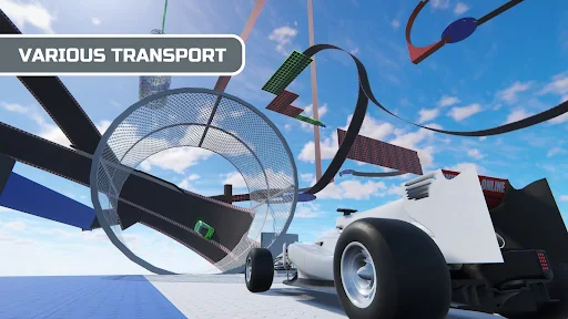 Every detail on the track can be carefully selected. Players can add long slopes, tire barriers, or sharp corners to increase the difficulty. Materials such as square or circular iron frames bring variety and make each track unique. In particular, adding dangerous areas such as the edge of the road with red lines makes players always have to concentrate to avoid being eliminated immediately.