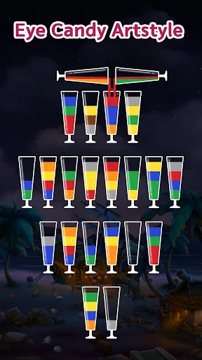 The main content of Sort Master revolves around colorful watercolor samples, so you will see a lot of colors integrated into this game. Accordingly, all the details are designed to stand out on the screen. Although quite simple, details such as glass jars or the surrounding background will make you feel excited. Moreover, the game screen will have a constant background change to bring a sense of boredom.