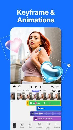 At the same time, the working screen is designed intuitively, with the editing area located in the center, allowing you to preview changes in real time. Additional options such as sound effects, color filters, and keyframe animations are neatly placed in sub-menus, creating a neat and easy-to-use feel. In particular, the function icons are vividly illustrated, thereby helping users to easily recognize even when using it for the first time.