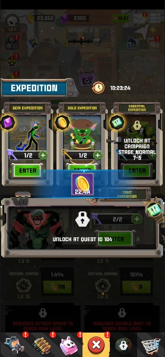 In the early stages, the player is alone in the fight and has to face many enemies, which will be the biggest difficulty that the player needs to overcome. Your opponents will constantly move, rushing straight at you to deal damage to the player, their purpose is to kill you, but don’t let them do it easily. To fight them, you need to equip yourself with more teammates, by buying in the store or doing missions. Join forces to fight, shoot out a series of damage from your weapons to destroy the enemy. Every time you kill an enemy, a number of gold coins will fall from their bodies. You need to collect those resources, because gold will be a currency in the game that players can use to upgrade the strength and fighting ability of the heroes.