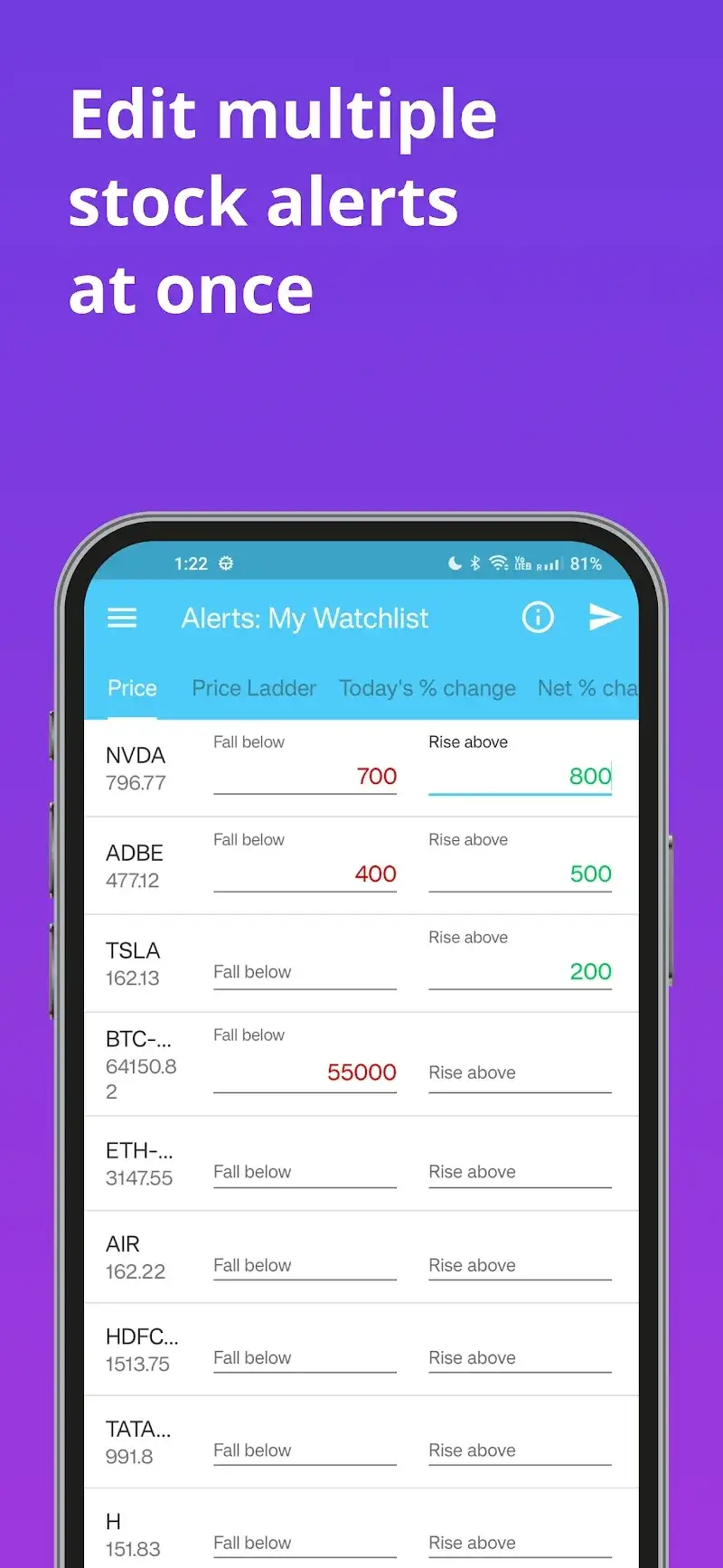 Stock Alerts BG Mod requires Android 7.0 or higher. The installation occupies approximately 10 MB of storage after the initial data download. Root access is not required for the mod to function.
