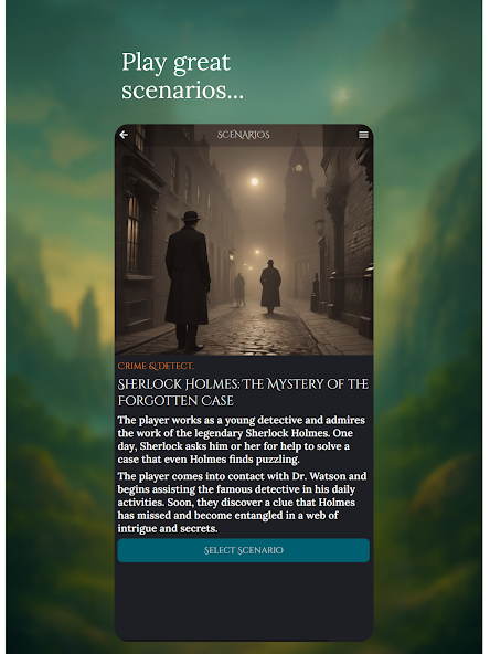 StoryWorld - Explore a world of captivating stories created using advanced artificial intelligence technologies. Here, every story comes to life and transforms into a unique adventure that completely depends on your choices. Whether it's an exciting fantasy saga, a romantic drama, or a detective story - you control the fate of the characters! Step into the shoes of famous characters from beloved movies and series to great historical events, or create entirely new heroes. For the youngest users, parental control filters are provided to create a safe space for creativity. Features: Interactive stories: The artificial intelligence instantly creates the continuation of the plot, taking into account every choice you make. Unlimited possibilities: Create your own plots or choose from a multitude of ready-made ideas. Dynamic illustrations: Accompany the narrative with visual images automatically generated for each scene. Audio accompaniment: Enjoy narrated stories that are perfect for relaxation or listening before bedtime.