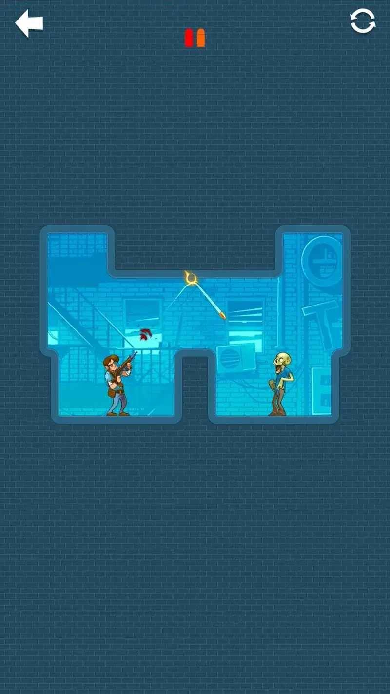 Creative bullet bounce: The game organizes difficult matches against zombies. Players will have to use physics knowledge to calculate the rebound angle of bullets when colliding with the wall. Creative gameplay will help players improve their performance.