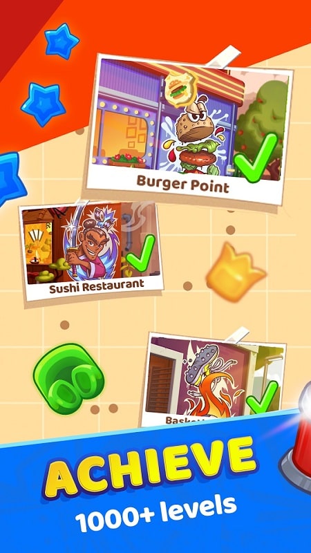 The game will give us a considerable amount with more than 1000 difficulty levels. You will gradually go from the familiar to the professional sections. Of course, the required items and the arrangement are constantly changing. You never know in advance what you will encounter. But we can learn to adapt as well as calculate efficiently. You can also use boosters to solve problems. They will help us open up new steps by destroying any part. Try a little bit every day, and you can become a master and get high scores.