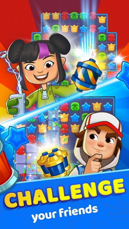 Subway Surfers Match allows you to play with and compete with whoever you want. Your points will be accumulated from the levels that you have passed. There are a total of two rankings: friend ranking and world ranking. If you get a big score, you can surpass others and improve your position. With Subway Surfers Match mod, nothing is too complicated if we make effort.