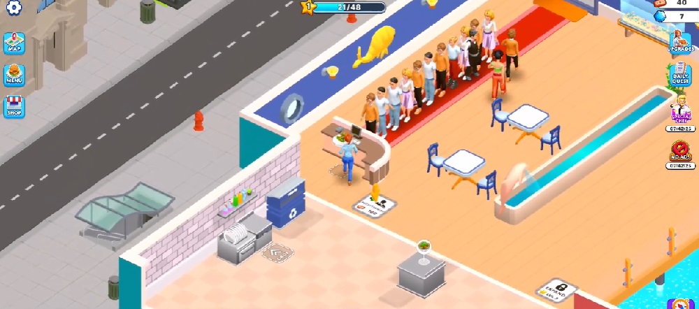 Players will have to compete with many other restaurants in this city, if you are not skillful in building your brand and upgrading your food, it can lead to serious consequences. Upgrading, renovating and redecorating the store is also a factor worth paying attention to, picky customers will definitely notice all the decorations and space of your restaurant. Don’t let them complain about the space not being beautiful and not being neat. Try to accumulate the assets you have earned from the food business and then upgrade the infrastructure of the store. That will be a smart investment and earn you double the previous amount, now start your journey of managing this restaurant with all your tactics and thinking.
