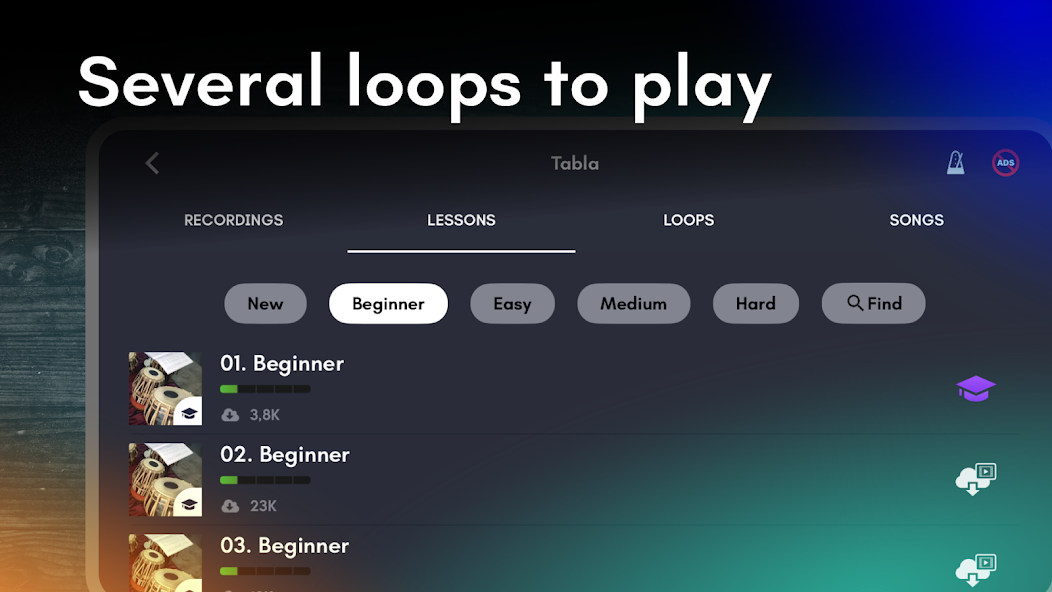 Tabla: India's mystical drums is a unique opportunity to immerse yourself in the world of Indian percussion right on your mobile device or tablet. With this innovative app, you can play any song anywhere. Feel how your fingers turn into magical drumsticks, creating a charged atmosphere and reverence. Perfect for anyone passionate about Indian music and percussion instruments. Tabla is an ancient Hindu percussion instrument widely used in religious and meditative music in India. It consists of two drums: DAYA, which is smaller in size and has a higher pitch, and BAYA, which is larger and has a deeper sound. This pair of drums is capable of reproducing a variety of rhythms and melodies, captivating listeners.