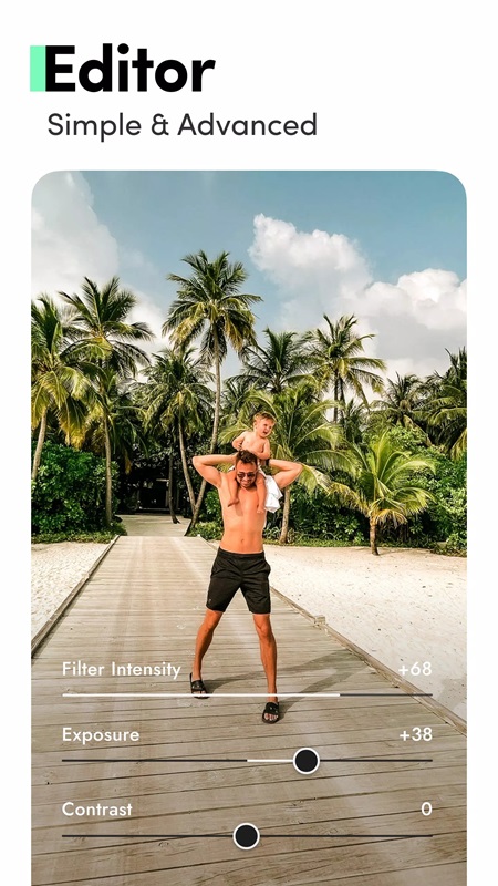 When editing photos or videos on TON MOD APK, you should combine both simple and professional editing tools. Thanks to that, users can easily customize images according to their personal style. The application displays all the adjustment bars right below the filter list. You can make adjustments to some parts such as filter intensity, exposure, contrast, saturation, sharpness and color temperature. Just move the adjustment bar until the photo has the color you like. All editing operations are smooth and precise, from brightening the photo, increasing sharpness to the color balancing process. The entire editing process is fully displayed on the photo, helping you easily observe and notice changes quickly.