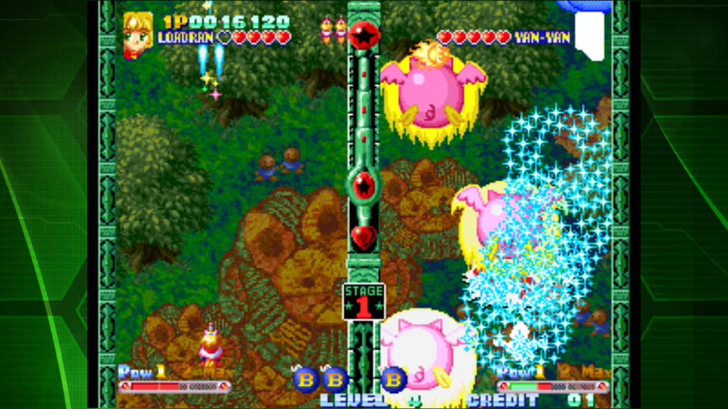 TWINKLE STAR SPRITES is a dynamic arcade shooter from SNK, released in 1996, where you’ll need to annihilate waves of enemies with chain explosions and powerful attacks, turning them into weapons against your opponent. The bright characters and unique gameplay make this game truly captivating! Classic NEOGEO games are now available on mobile devices with updated graphics, user-friendly controls, online leaderboards, and quick save features, allowing you to relive these legendary masterpieces.