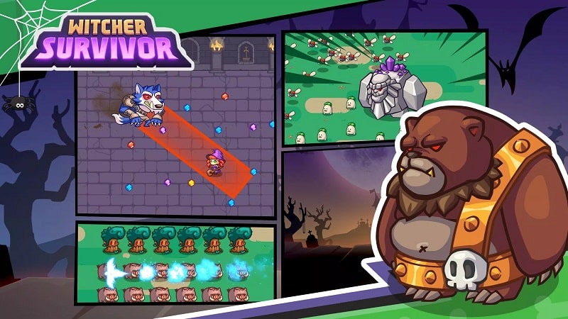 You will stand out to prevent thousands of monsters from rushing to the human world and attacking. They want to take over the lands and turn this place into their inviolable territory. However, they must first overcome a witch with powerful powers. That’s because you will be on the side of humans and prevent monsters from achieving their goals. With the skills of a powerful wizard, you will defeat wave after wave of monsters. After defeating the final boss, you will successfully protect the world from being destroyed. Download Witcher Survivor MOD APK to control witches to fight to prevent monsters from invading humans.