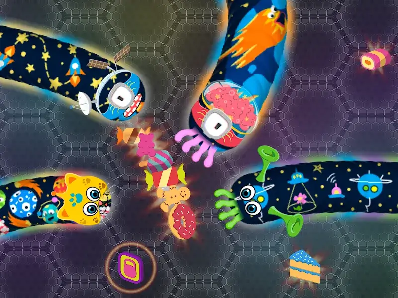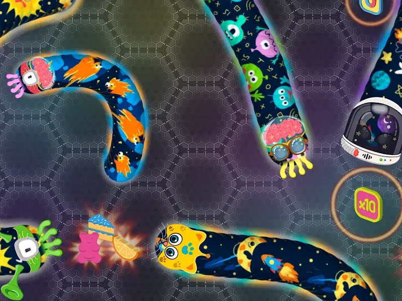 Grow Quickly: For your snake to grow quickly, you will have to actively feed it. The food brought to you is also extremely diverse, from candies to carbonated drinks to give you full and delicious meals.