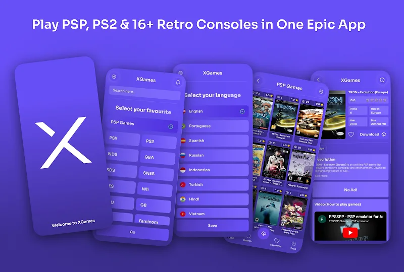XGames Mod is an Android emulator that streams PSP and PS2 titles without requiring original hardware. The app targets users who want a portable retro gaming experience and who are comfortable sideloading APKs. Official builds limit the game catalog and display ads; the mod version expands the catalog and suppresses advertising.