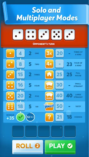 The combinations in Yatzy are extremely important that directly affect the outcome of the matches. Therefore, you need to observe the combinations on the screen and make the most correct choice. Each combination will suit a different dice roll situation, so choose optimally. At the same time, the control mechanism in the game is also very simple. With just a few taps and swipes on the screen, you can perform related actions effectively.